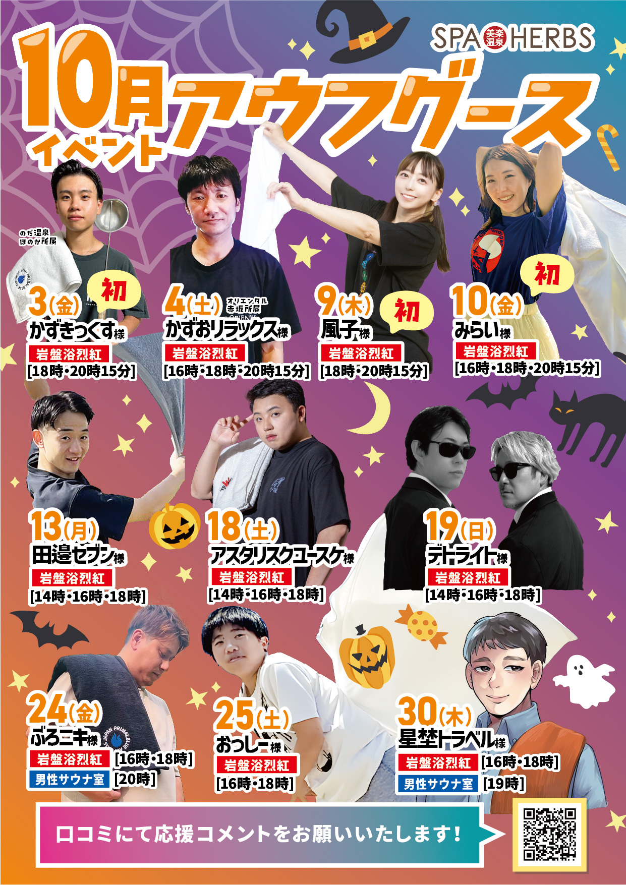 【追加情報!】10/28(火)あかべこ様ご来館!16時、18時、20時15分(全て岩盤浴エリア烈紅)10月も多くの熱波師様が当館に来館されます!ぜひご参加ください!